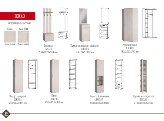 Модульная прихожая Джаз (Астрид-Мебель) продается в интернет-магазине mebel-online-mahachkala.ru по цене 24 718 руб. Есть доставка по Махачкале и Республике Дагестан. Возможность подъема на этаж и сборки уточняйте у менеджера по телефону 8(800)505-27-11.