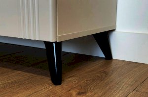 Комод изготовлен из качественных материалов: корпус выполнен из ЛДСП, что гарантирует прочность и долговечность, а фасад, выполненный из МДФ в плёнке ПВХ, не только выглядит эстетично, но и защищает комод от повреждений. Особое внимание заслуживает фрезеровка фасадов, которая придаёт изделию изысканный вид.