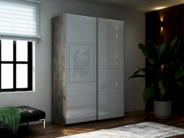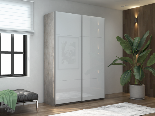 Шкаф-купе 2-х дверный Прайм Белое стекло/Белое стекло 1400х2300х570 мм Бетон