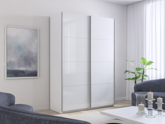 Шкаф-купе 2-х дверный Прайм Белое стекло/Белое стекло 1400х2300х570 мм Белый снег